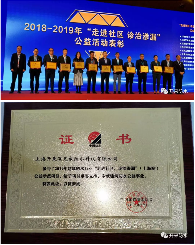 會上,還對積極參與“走進社區(qū),診治滲漏”(成都站)公益活動的成都市同行社會工作服務中心等7個單位,(上海站)公益活動的上海閔行區(qū)領英家庭教育服務中心等18個單位予以表彰,開來濕克威作為本次公益活動的協(xié)辦單位,積極參與本次活動(上海站),并受到了協(xié)會的表彰,榮獲“走進社區(qū),診斷滲漏”公益活動先進企業(yè)。