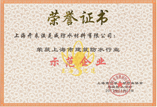 熱烈祝賀開來濕克威榮獲“上海市建筑防水行業示范企業”