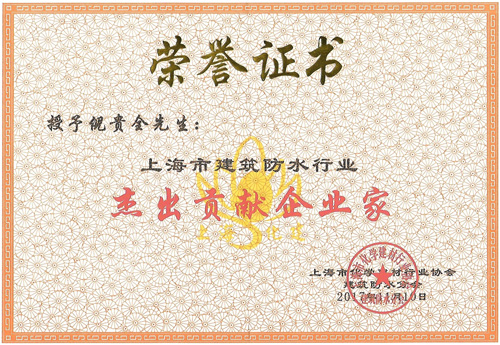 2017年11月11日,“上海市化學建材行業協會建筑防水分會”在上海召開,本次會上,上海開來濕克威防水材料有限公司榮獲上海市建筑防水行業示范企業;上海開來濕克威防水材料有限公司董事長、中國建筑防水協會常務理事、上海化學建材協會防水分會副會長、河南省防水協會執行會長倪貴全榮獲“上海市建筑防水行業杰出貢獻企業家”。